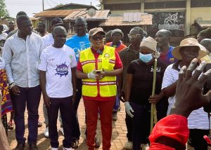 Upon completion of activities at the initial locations, all participants reconvened at the Asesewa Market, where an intensive cleanup was undertaken to improve sanitary conditions in the market environment. Throughout the exercise, the District Environmental health unit supervised the process to ensure proper coordination, safety, and effectiveness of the activities carried out.
